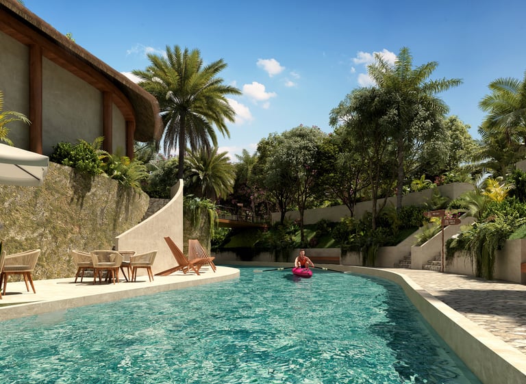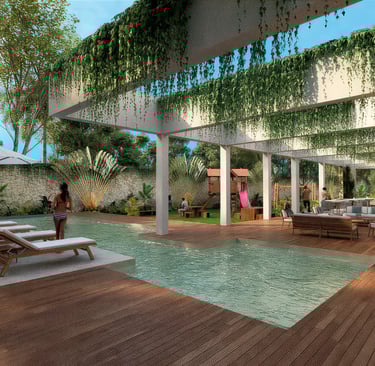 como propietario tendrás acceso al Beach Club Coraletta y a la Casa Pontthó, donde podrás disfrutar de albercas, áreas gourmet, terrazas frente al mar y servicios tipo resort.